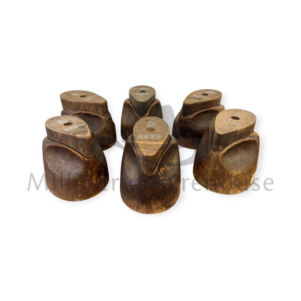 Vintage #999 fedora hat blocks. These are in great vintage condition. Normal signs of wear and use but still have plenty of life left in them! Sold as a set of six. Blocks measure 55cm, 56cm, 57cm, 58cm, 59cm and 61cm.
